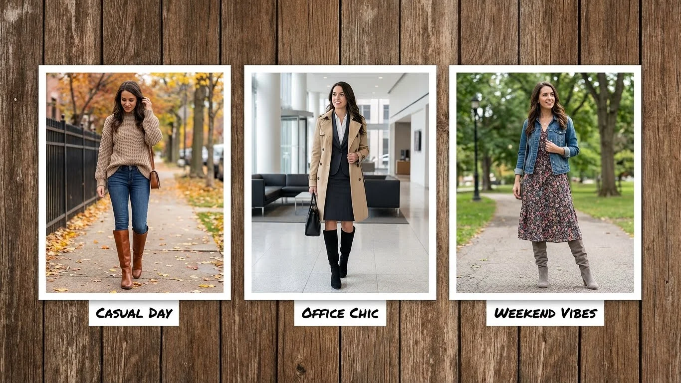 A Smart Casual Dress with knee-high boots blends polish and comfort perfectly. Tailored trousers or a midi dress paired with sleek boots work well for brunches, casual meetings, or dinner plans where you want to look put-together without feeling overdressed.