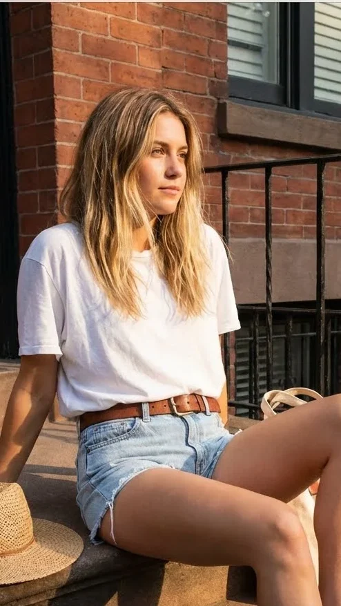 This outfit feels classic and clean. A white tee keeps the look simple. Shorts make it easy for summer. It works for many daily activities. The style feels relaxed. Easy to wear all day
